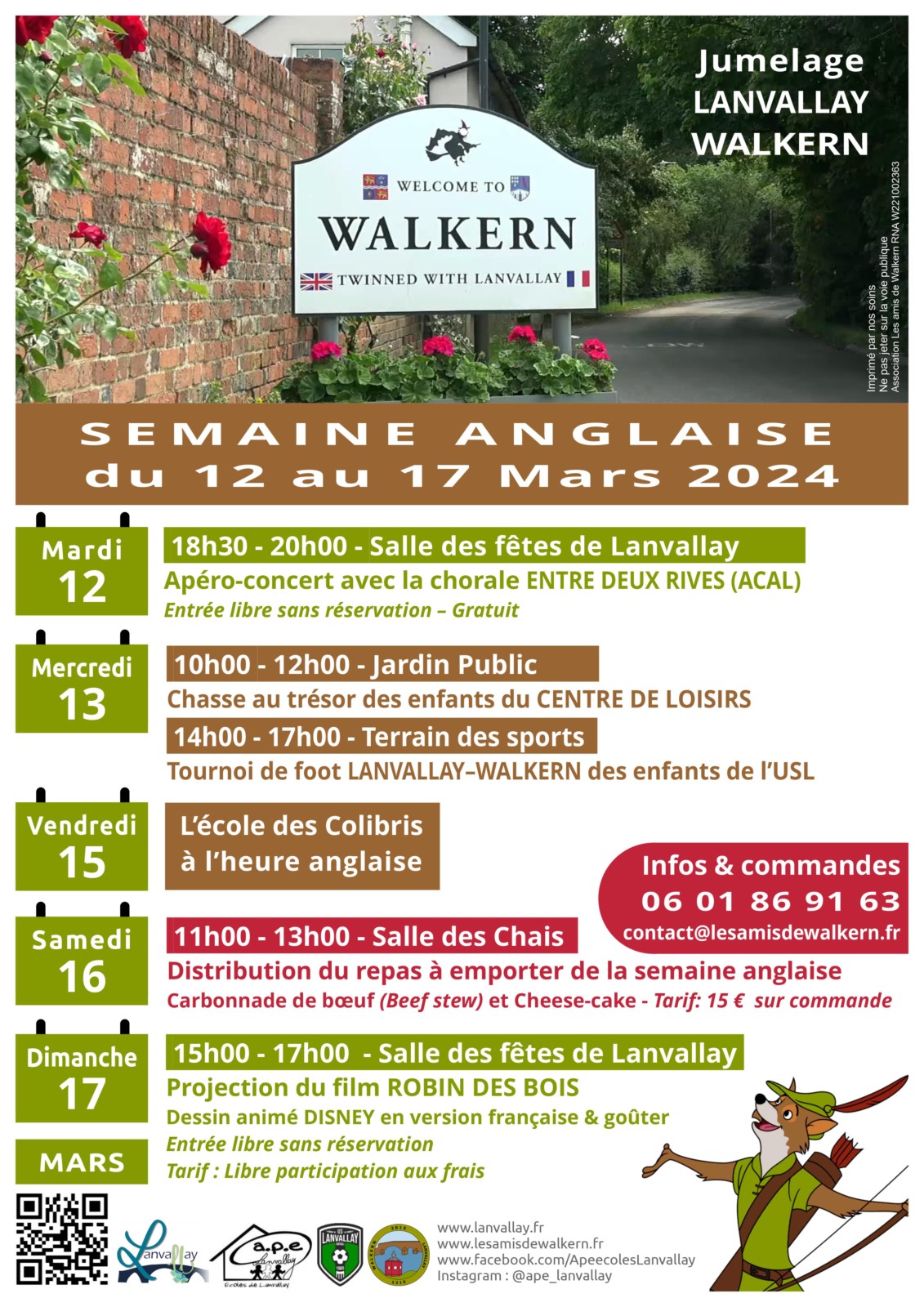 La semaine anglaise 2017 a été organisée du 13 au 19 mars par l’Association «Les Amis de Walkern» avec l’aimable participation des commerçants et services de Lanvallay.