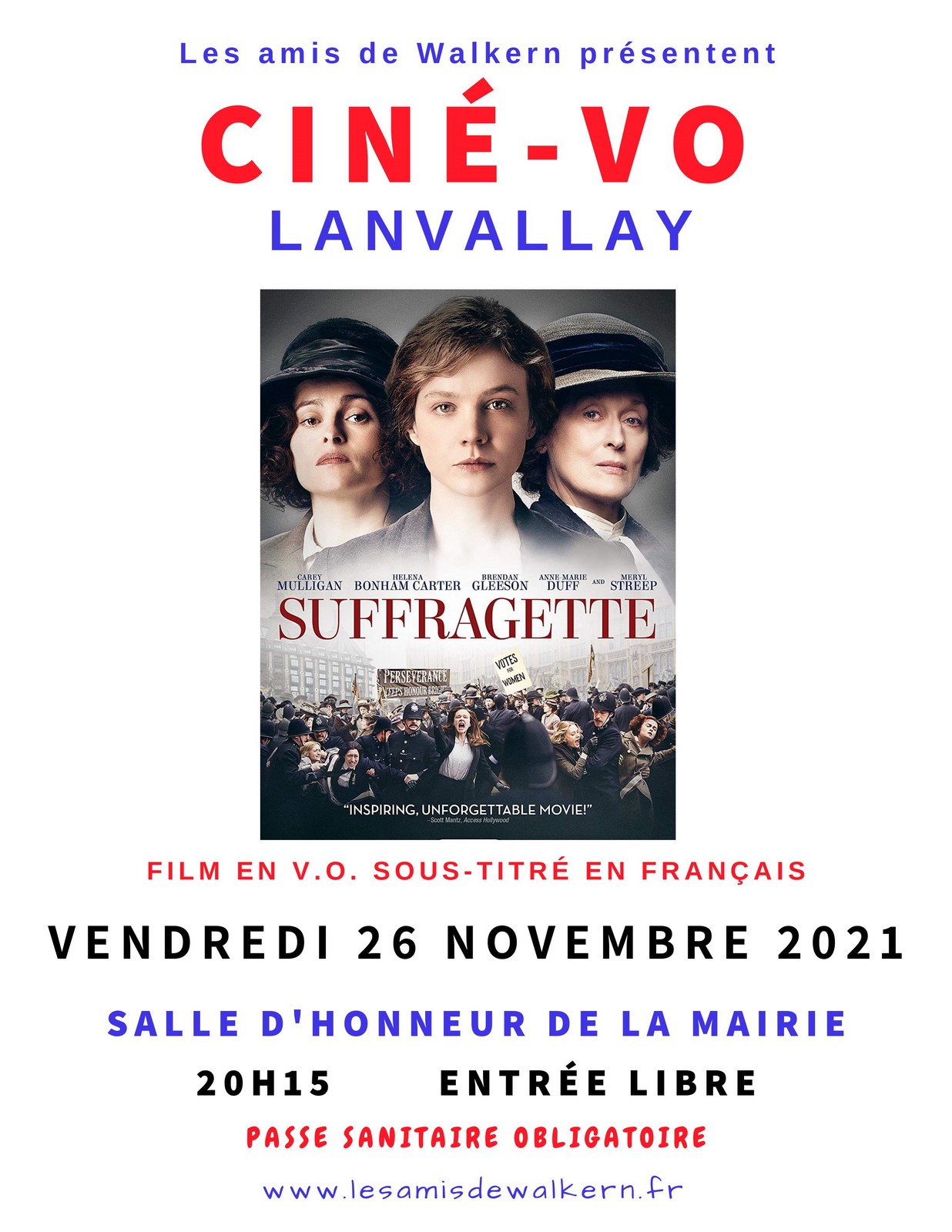 Le film anglais "Le discours d'un roi" en VO, sous-titrée, sera diffusé le mardi 20 mars à 20h30 dans la salle d'honneur de la mairie.