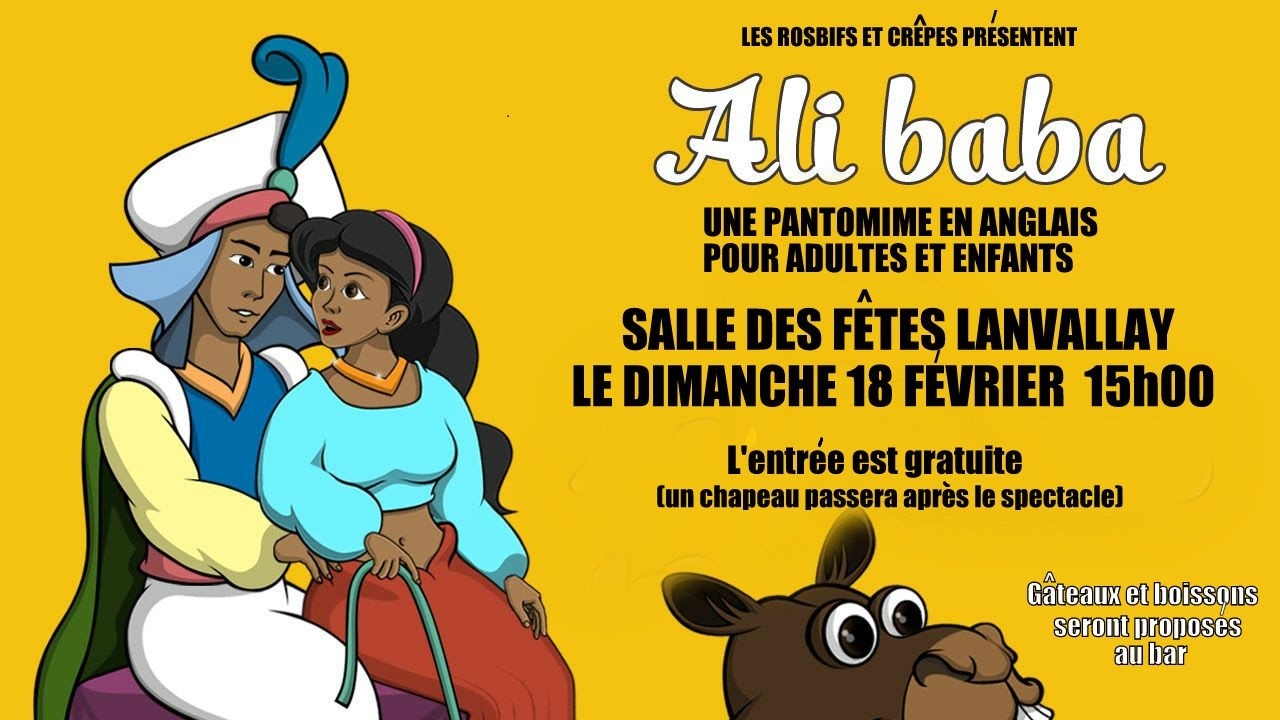 A la demande conjointe des comités de jumelage Lanvallay/Walkern et Dinan/Exmouth, la troupe de théâtre anglo-française « Les Rosbifs et Crêpes », membres de l'Association Culture et Loisirs de Pluduno, présentera la pantomime « Ali Baba » à la Salle des Fêtes de Lanvallay le dimanche 18 février prochain à 15h00.
