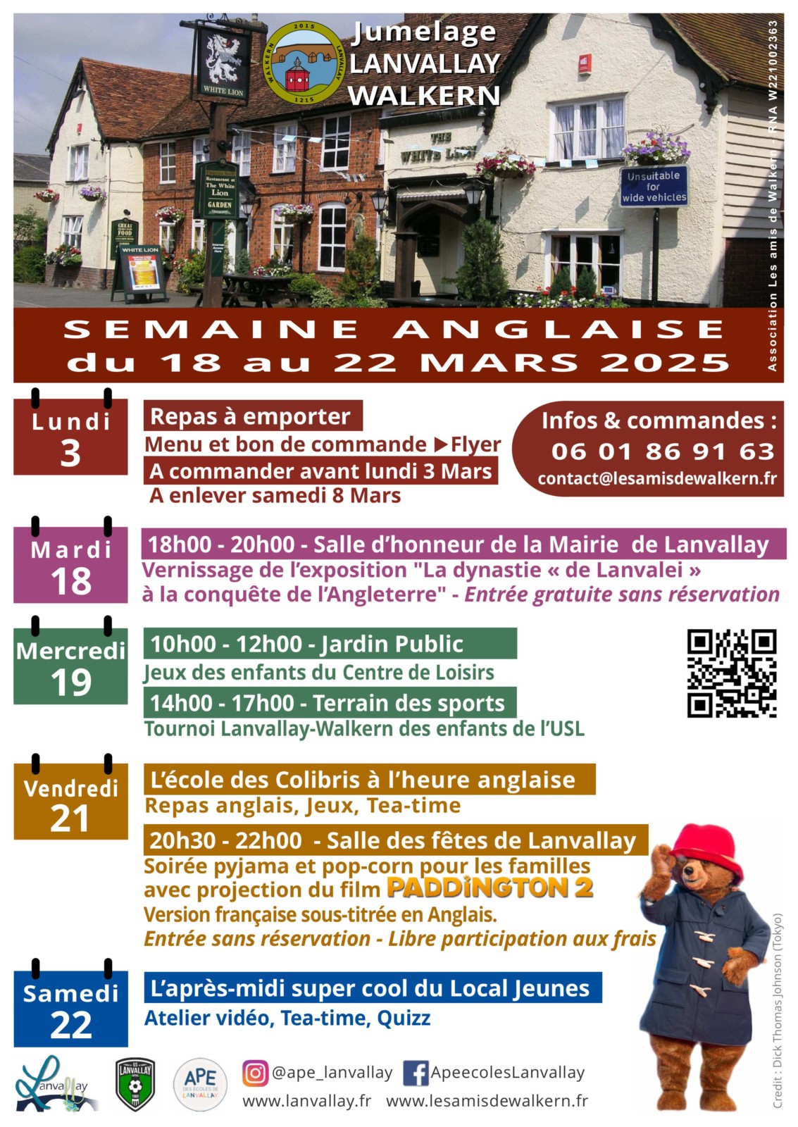 La semaine anglaise 2017 a été organisée du 13 au 19 mars par l’Association «Les Amis de Walkern» avec l’aimable participation des commerçants et services de Lanvallay.