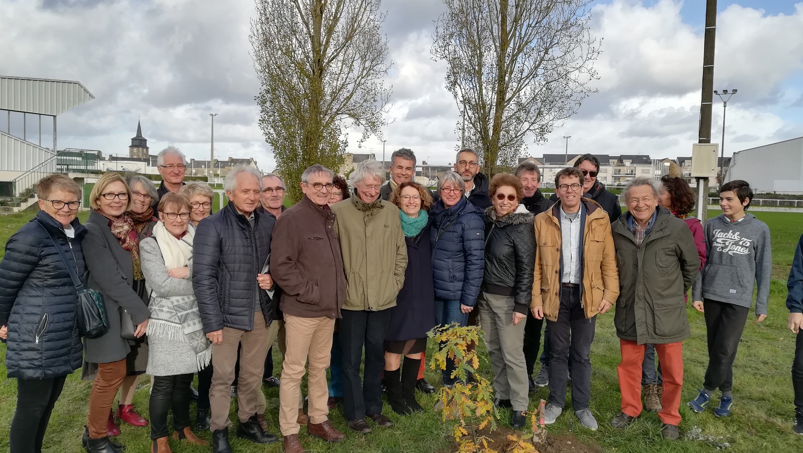 Après avoir assisté aux célébrations de l'Armistice de la première guerre mondiale 1914-1918 puis avoir déjeuné ensemble, tous les participants se sont dirigés vers le jardin du pôle sportif où le chêne a été planté provisoirement dans sa place réservée près du futur verger de pommes.